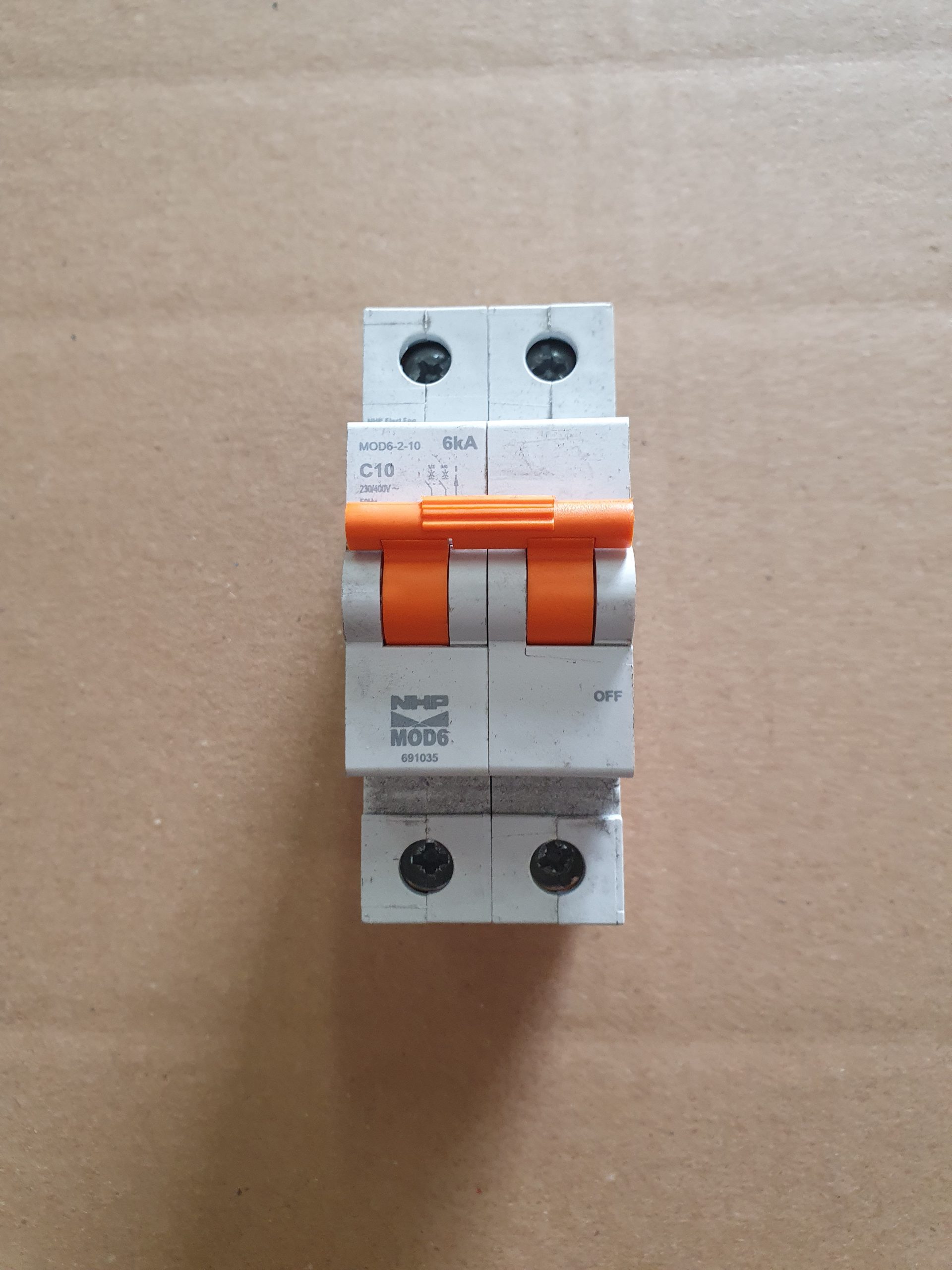 NHP 10 Amp MOD6 Miniature Circuit Breaker MCB C Curve 2 Pole 6kA