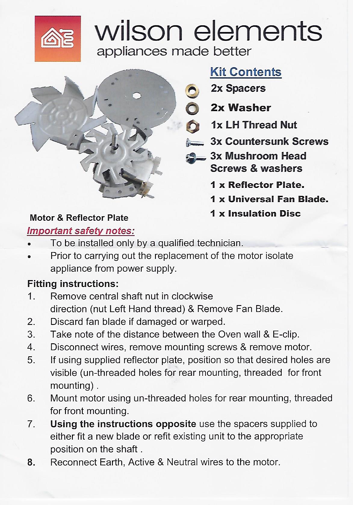 OFM-01 Oven Fan Motor Kit Genuine Wilson’s kit 23.2W