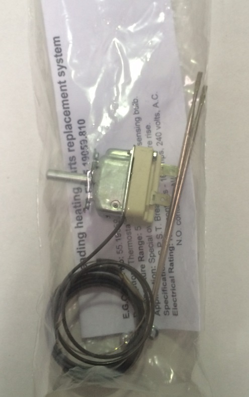 E.G.O. Thermostat 55-280 deg single pole1290 capillary dual sensor type 144 x 3mmstart angle 48 deg 270 deg rotationSPST break on temp rise 16A 240V